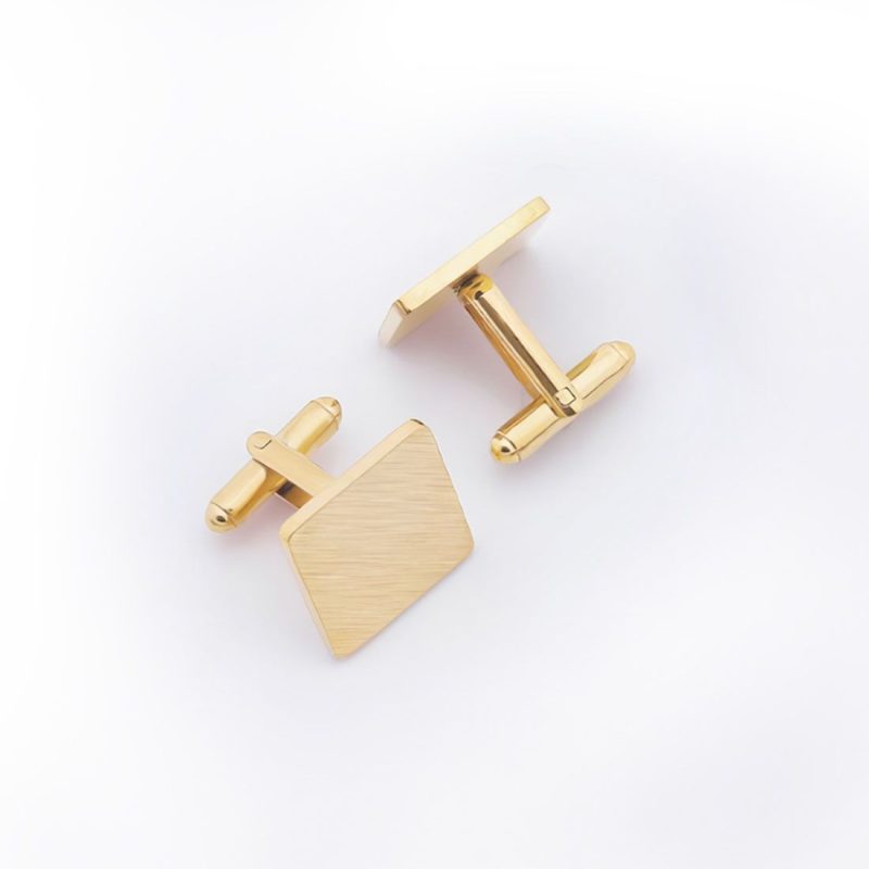Gemelos con forma Cuadrada de Acero con baño de oro 18k con textura acabado mate.