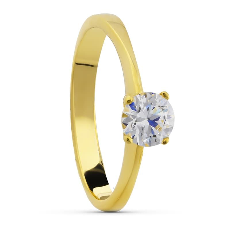 Anillo solitario de oro de 18k (5mm) y circonita engarzada por cuatro garras.
