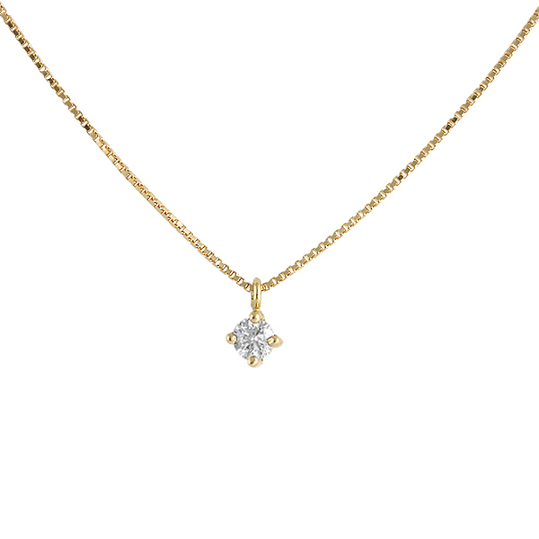 Collar con cadena veneciana de 43cm en oro de 18k y un Diamante (2.80mm) de 0.08cts de talla Brillante, Color H y Pureza VS2, engarzado en 4 Garras.
