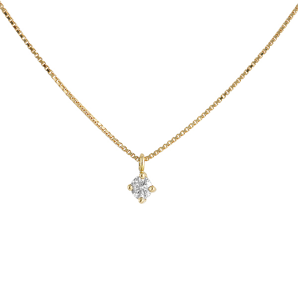 Collar con cadena veneciana de 43cm en oro de 18k y un Diamante (2.50mm) de 0.06cts de talla Brillante, Color H y Pureza VS2, engarzado en 4 Garras.