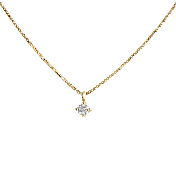 Collar con cadena veneciana de 43cm en oro de 18k y un Diamante (2mm) de 0.04cts de talla Brillante, Color H y Pureza VS2, engarzado en 4 Garras.