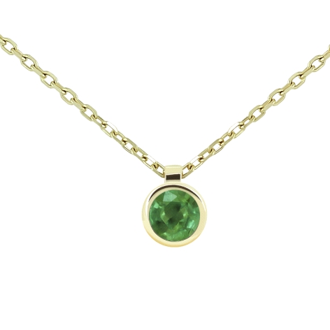 Collar de oro 18k, con cadena forzada de 45 cm y doble asa y chatón de esmeralda natural talla brillante de 0.11cts (3mm).