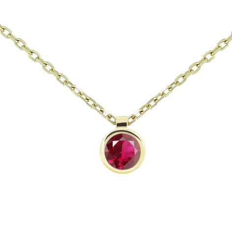 Collar de oro 18k, con cadena forzada de 45 cm y doble asa y chatón de rubí natural talla brillante de 0.14cts (3mm).