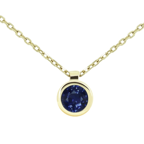 Collar de oro 18k, con cadena forzada de 45 cm y doble asa y chatón de zafiro natural talla brillante de 0.35cts (4mm).