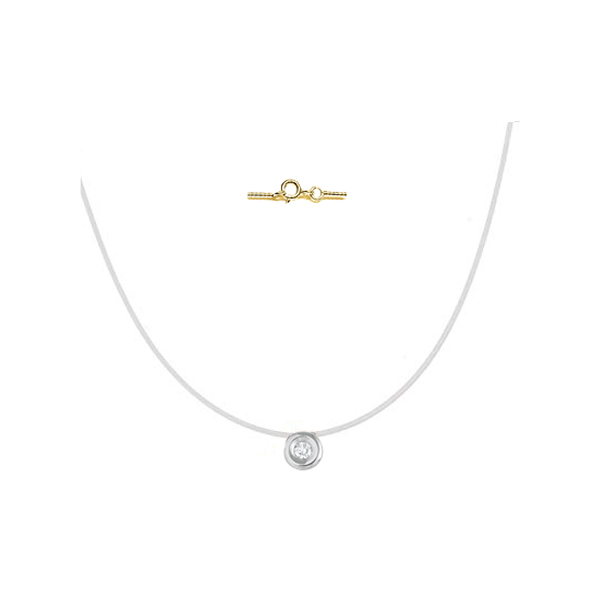 Collar de sedal de 45cm y colgante de oro blanco de 18k y un Diamante (1.70mm) de 0.03cts de talla Brillante, Color H y Pureza VS2, engarzado en 4 Garras.