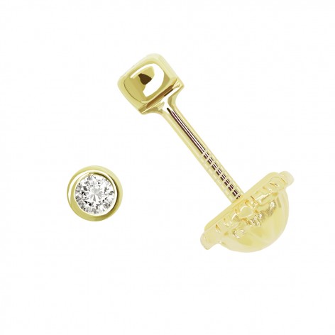 Pendientes pequeños de oro 18k y chatón de circonita (2.5mm) con cierre de rosca.