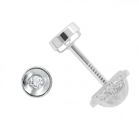 Pendientes chatón pequeños de oro blanco 18k y circonita (3mm) con cierre de rosca.
