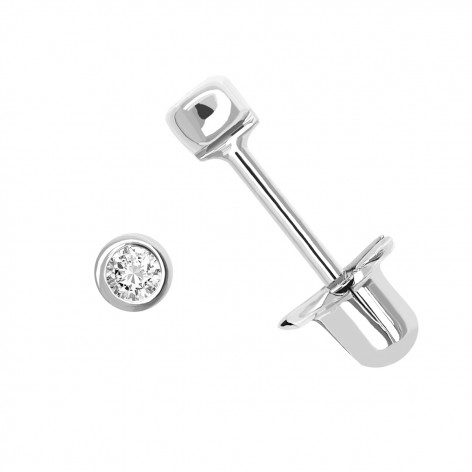 Pendientes pequeños de oro blanco 18k y chatón de circonita (2.5mm) combinando ambos cierres, cierre de presión parar entrar, y con cierre de rosca para salir.