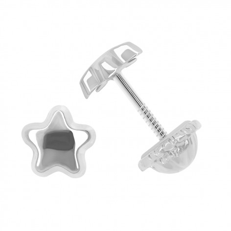 Pendientes pequeños para bebé de oro blanco 18k en forma de estrella (5mm) con cierre de rosca.