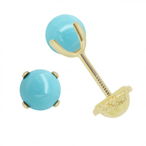 Pendientes pequeños de oro 18k y turquesa (4mm) engarzado por cuatro garras con cierre de rosca.