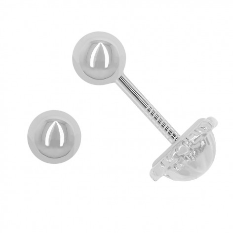 Pendientes pequeños para bebé de oro blanco18k en forma de bola lisa (4mm) con cierre de rosca.